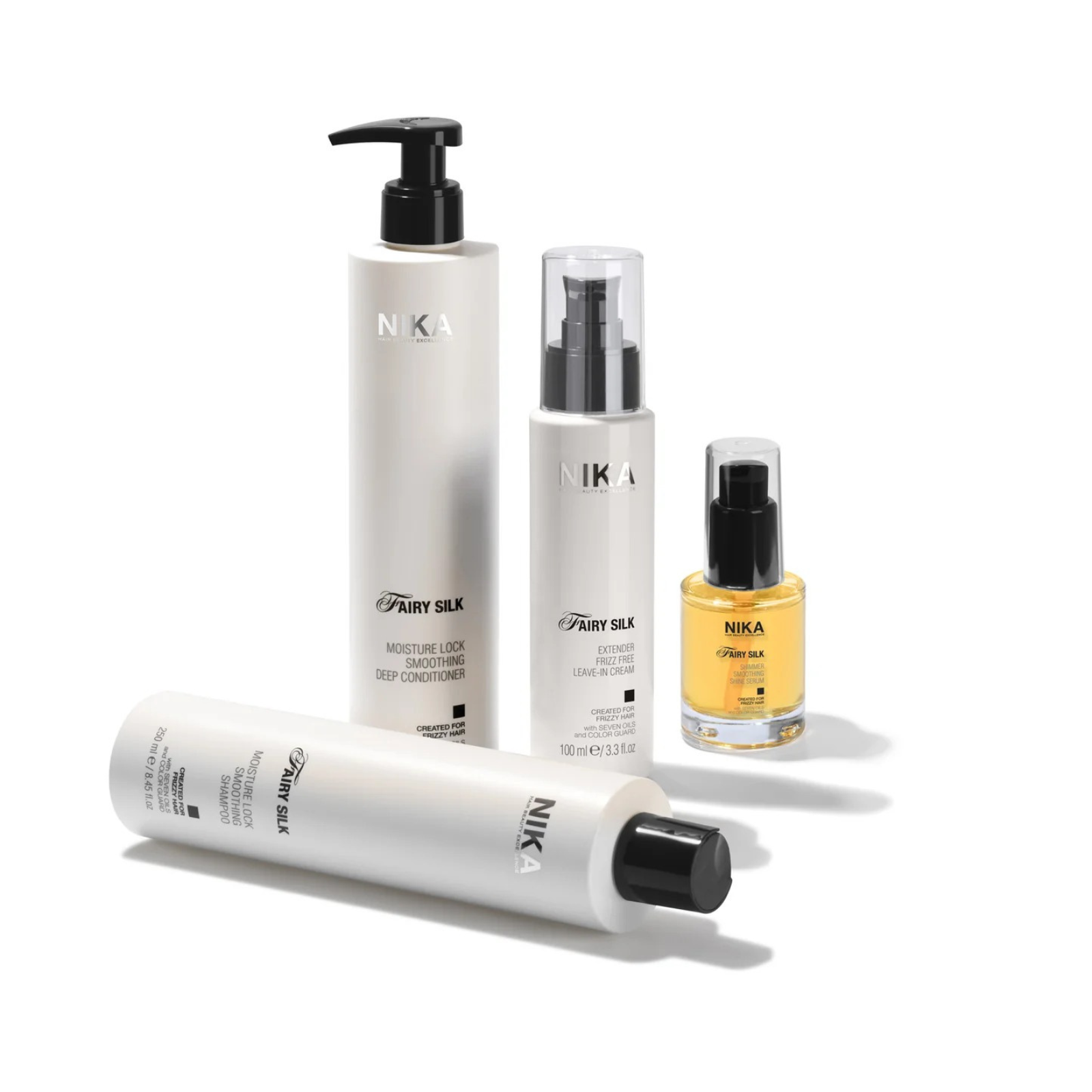 Un pachet de 4 produse pentru netezirea părului creț, frizzy, greu de aranjat, capabile să-ți lase părul neted, mătăsos și strălucitor.